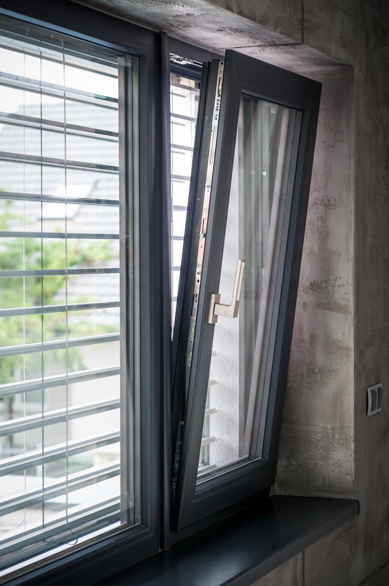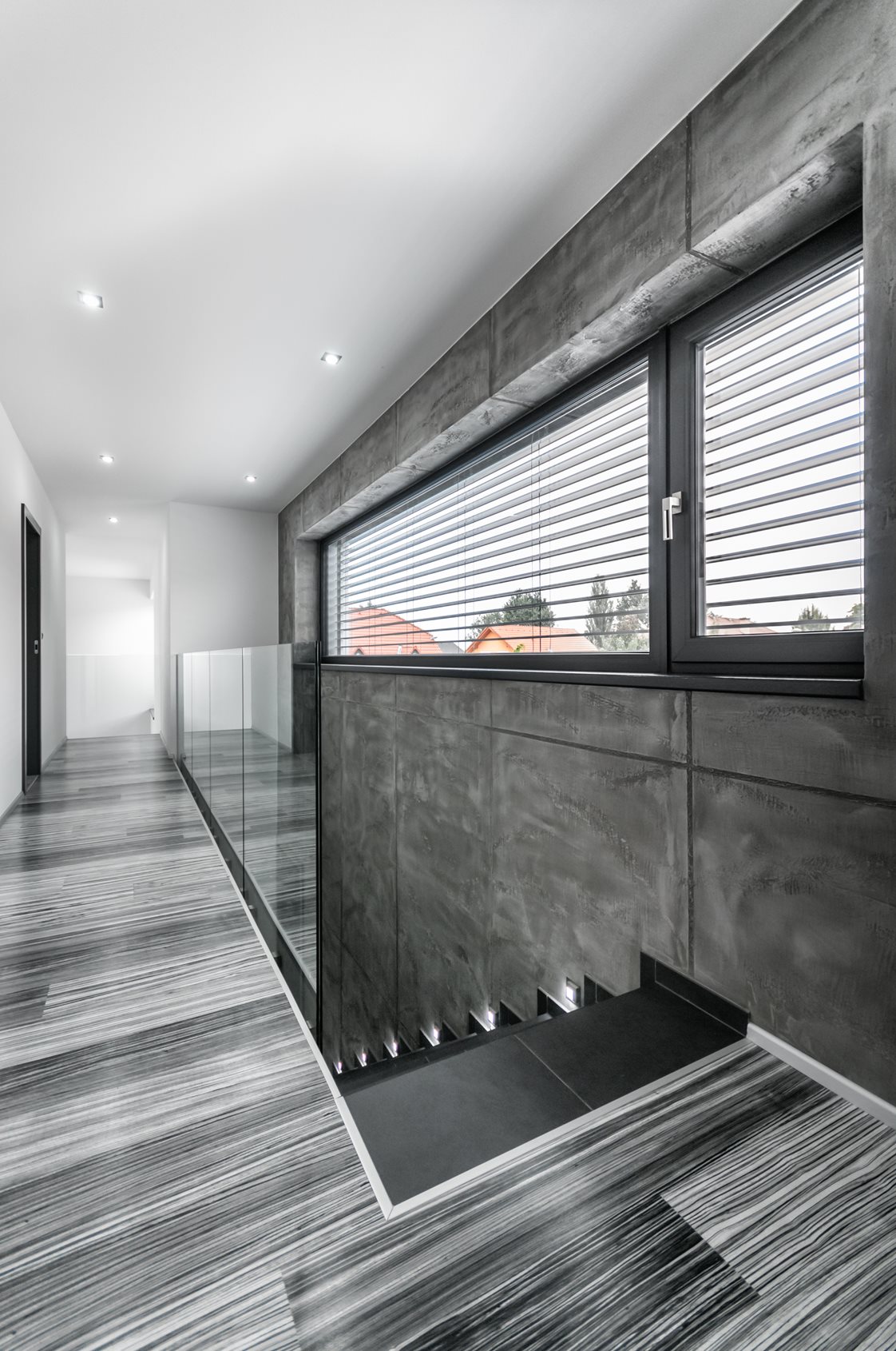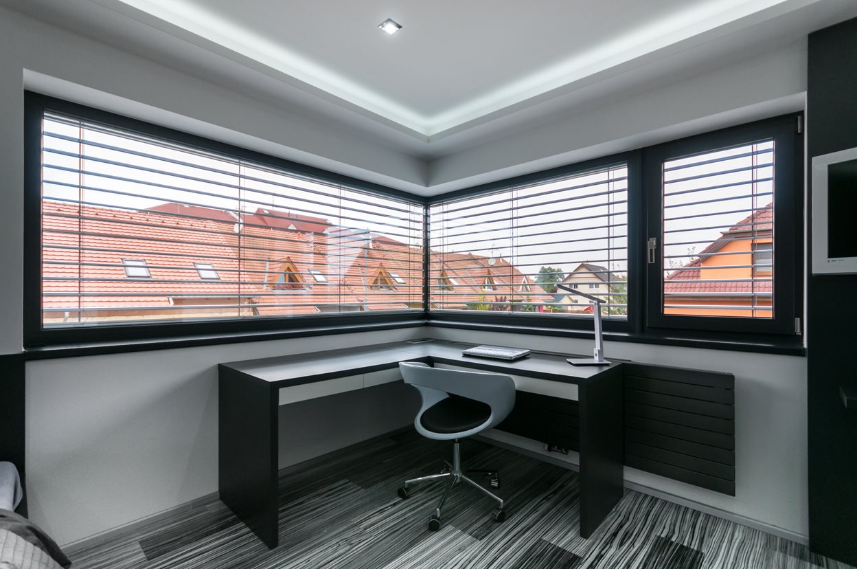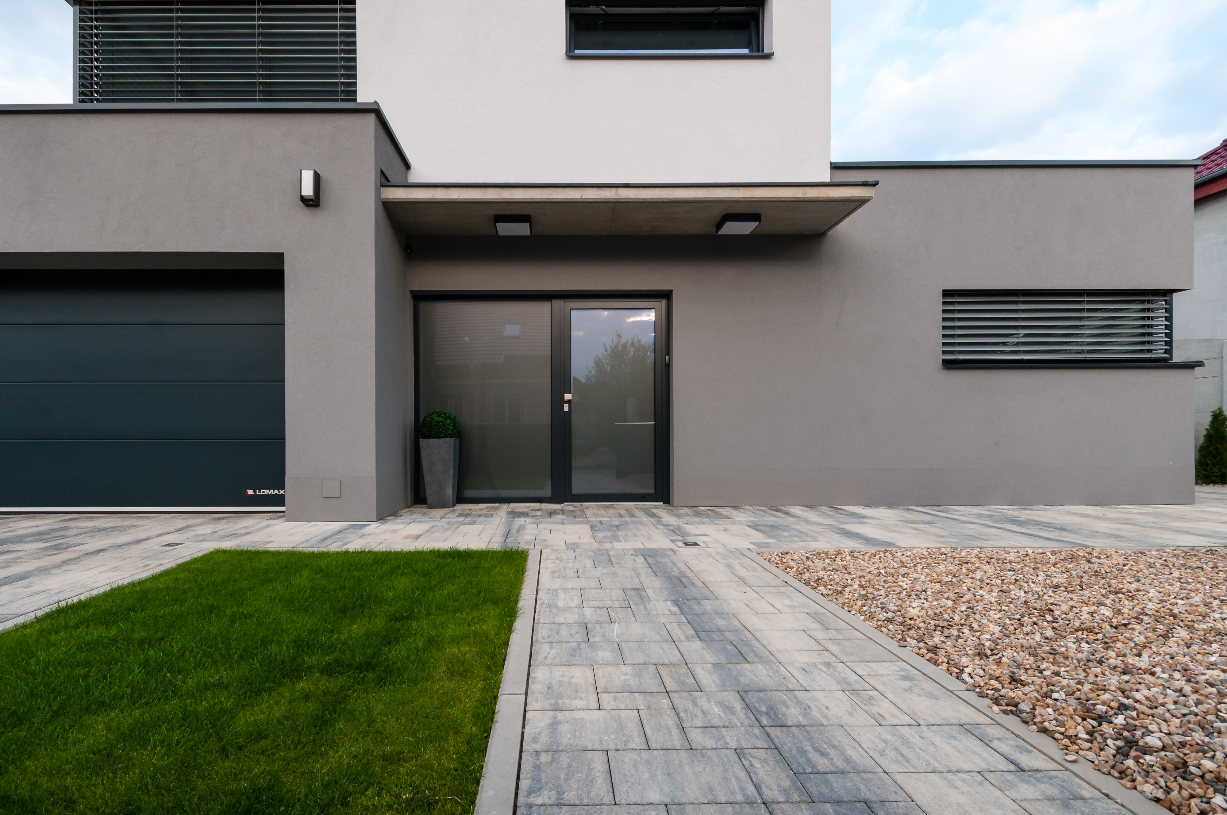 A ház jellegzetessége a szokványosnál jóval nagyobb ablakok (3,5 x 2,4 m ill. 4,5 x 1,3 m) használata. A hatalmas üvegtáblákból keret nélküli üveg-üveg kapcsolódással kialakított sarokablakok, illetve a teraszra vezető tolóajtó az, amik világossá és légiessé varázsolja az egész épületet. Ráadásul az ablakok mindegyike passzívház-kompatibilis. A választott Eforte ablakprofilok minden nehézség nélkül bírnak el több száz kilogrammnyi üveget. A szürke dekor harmonikus egységet alkot a homlokzat és a lemeztető színével.