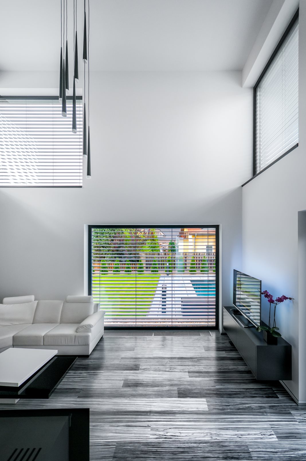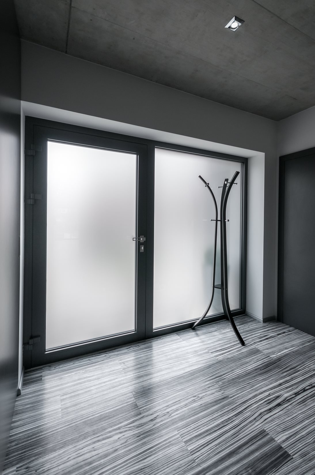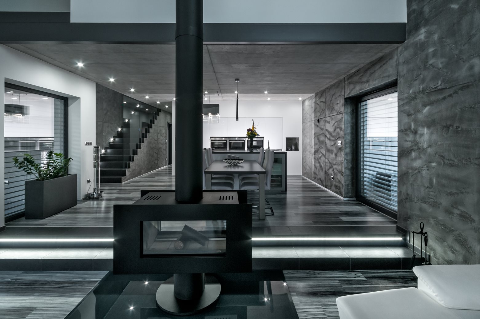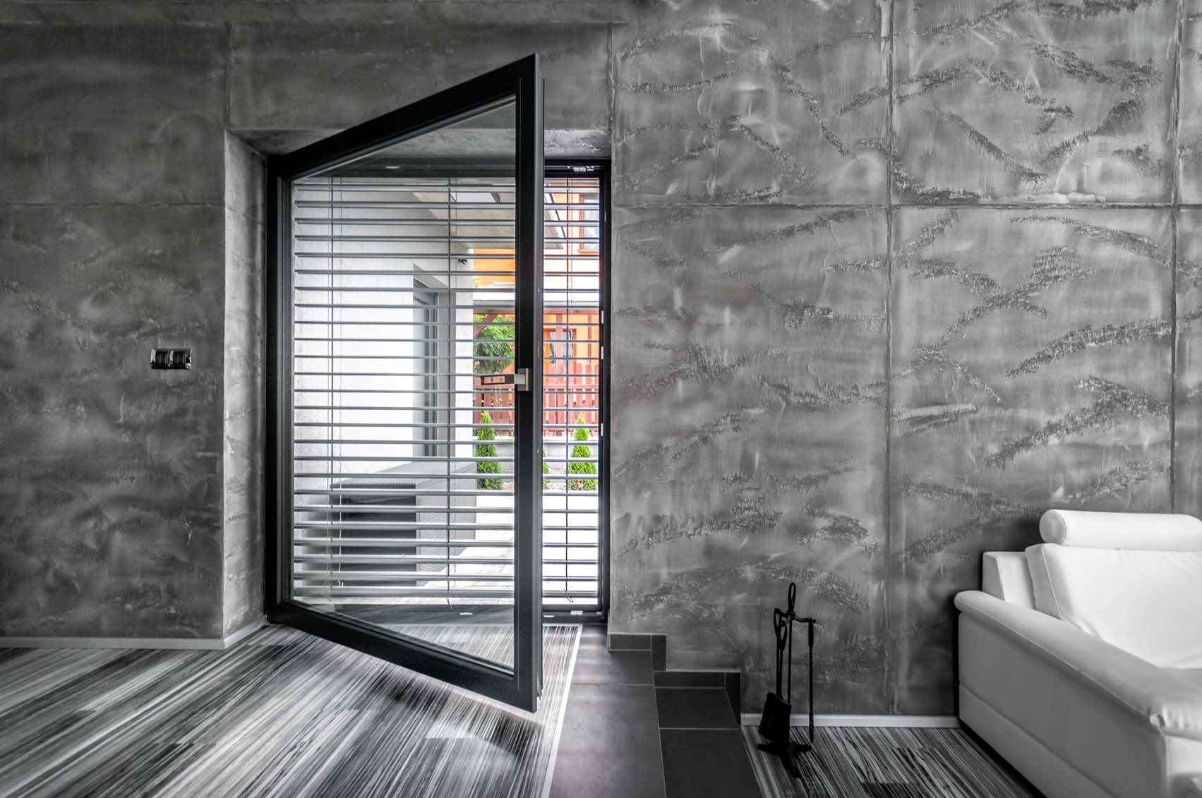 A ház jellegzetessége a szokványosnál jóval nagyobb ablakok (3,5 x 2,4 m ill. 4,5 x 1,3 m) használata. A hatalmas üvegtáblákból keret nélküli üveg-üveg kapcsolódással kialakított sarokablakok, illetve a teraszra vezető tolóajtó az, amik világossá és légiessé varázsolja az egész épületet. Ráadásul az ablakok mindegyike passzívház-kompatibilis. A választott Eforte ablakprofilok minden nehézség nélkül bírnak el több száz kilogrammnyi üveget. A szürke dekor harmonikus egységet alkot a homlokzat és a lemeztető színével.